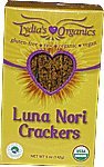Lydia's Lovin Foods Luna Nori Crackers have a nutritious crunch with a vegetable nori flavor. This is Lydia's Best Seller! These crackers are made from vegetables, nuts, seeds, herbs, spices and sea vegetables and are grainless, gluten-free, sugar-free, oil-free and soy-free. Try these with your favorite spread like a hummus made from sprouted garbanzo beans. The nori and dulse sea vegetables provide necessary minerals beneficial to health. All Lydia's foods and crackers are made with all organic ingredients, gluten-free and soy-free, inspiring raw food. All organic whole food. Try all five varieties of Lydia's Organics raw food crackers. Certified Organic Ingredients: Sprouted almonds, carrots, celery, nori, sprouted flax, dulse, green onions, lemon, Himalayan Crystal Salt & love. Dehydrated at low temperature to preserve "life-force". Gluten-Free Net wt.: 5 oz package